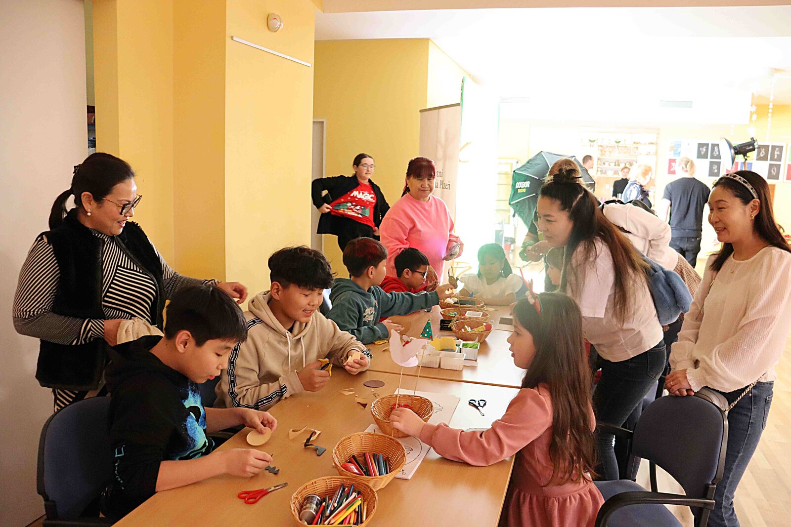 S návštěvníky jsme si povídali o vánočních tradicích nejen v České republice, ale i v zemích odkud pocházejí, a také o novoročních oslavách v Mongolsku. Vánoční zvyk rozkrajování jablíčka si hosté mohli i sami vyzkoušet. V průběhu celé akce si děti vyráběly v tvořivé dílničce předměty s vánoční tematikou. S velkým zájmem se jako vždy setkal Fotokoutek Fotoskop, díky kterému všichni získali krásné obrázky na památku.