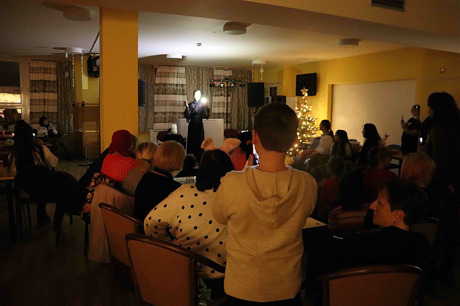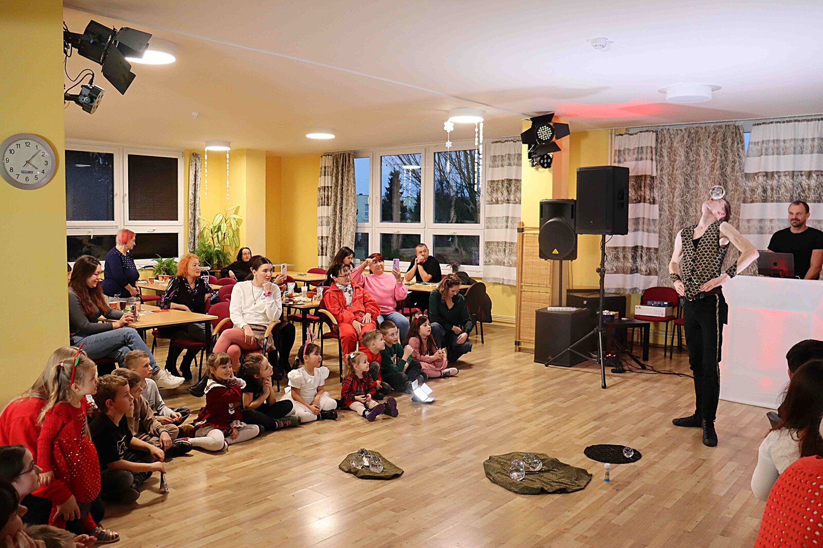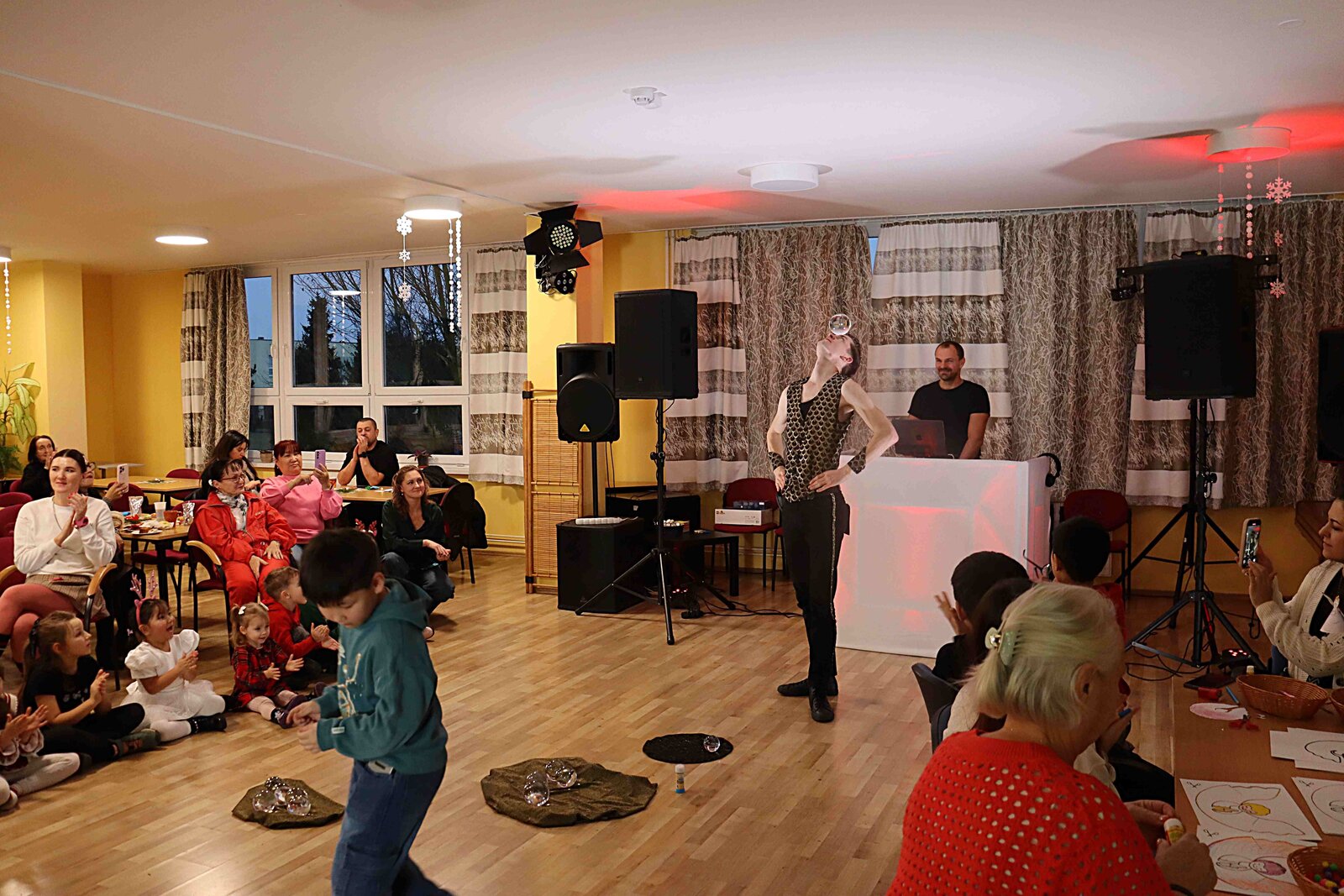 Hosté všeho věku s úžasem sledovali dvě vystoupení kouzelníka a žongléra. Nejprve všechny okouzlilo žonglérské vystoupení se skleněnými koulemi, poté rozzářil oči dětí i dospělých svou magickou světelnou show. Program doplňovaly soutěže a hudební produkce, při které si návštěvníci užili tanec. Do taneční soutěže se s nadšením zapojili nejen děti, ale i dospělí. Navázali jsme také na krásnou tradici zapalování svíček pro ty, kteří s námi nemohou být o Vánocích. Atmosféru dotvářel vánoční stromeček a české vánoční pokrmy i ochutnávky jídel z dalších zemí spojených s tímto obdobím roku.